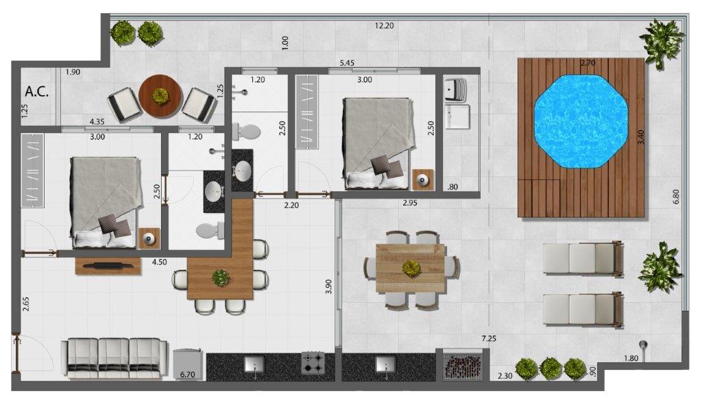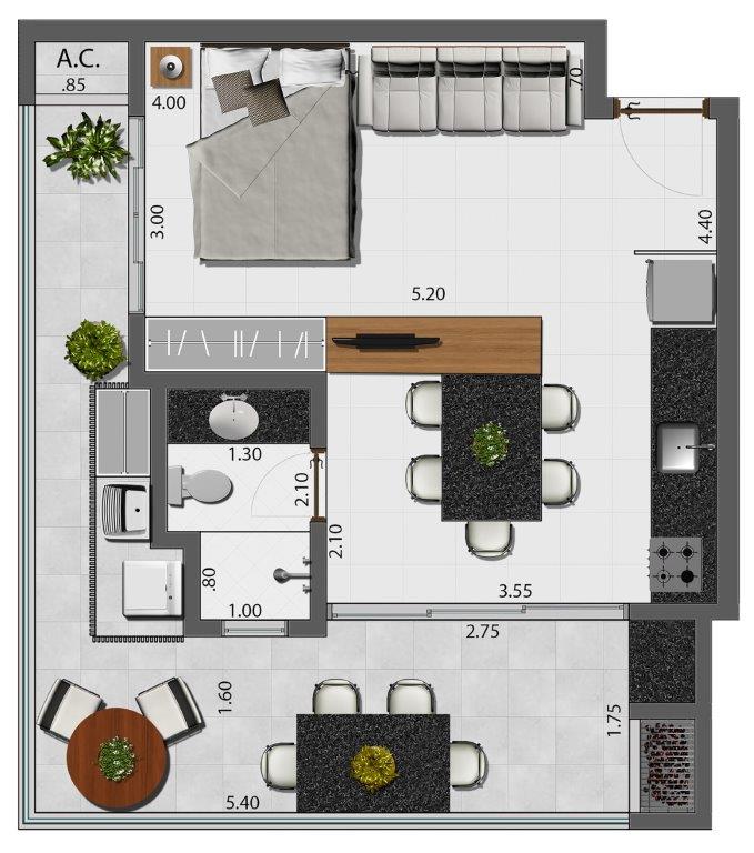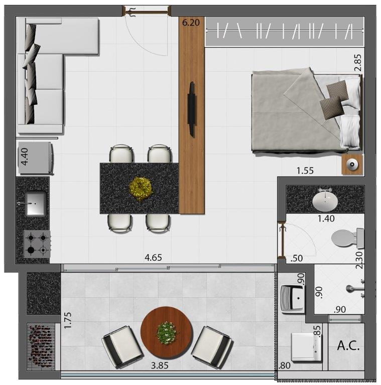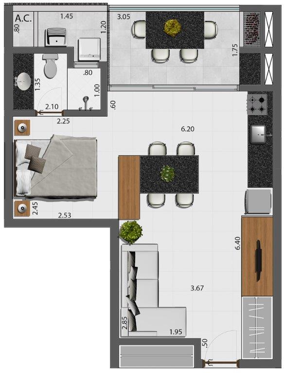 Empreendimento que irá revolucionar o bairro em termos de qualidade e arquitetura, com apenas 24 unidades sendo vinte apartamentos padrão estúdio e quatro coberturas com área de lazer privativa.