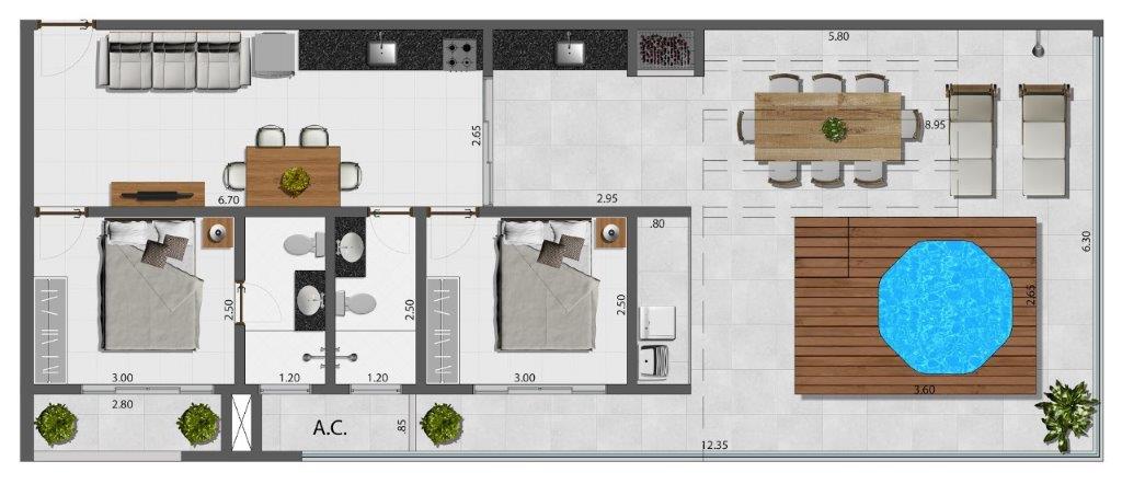 Como todos os projetos da Uba Invest o condomínio contará com captação de energia solar e também de água de chuva para áreas comuns buscando sempre contribuir com a sustentabilidade do meio ambiente, além disso o empreendimento terá nível de acabamento diferenciado e uma bela área de lazer comum, com piscina, sauna, salão gourmet, e um espaço aberto na cobertura do prédio projetada para prática de exercícios tendo como cenário uma bela vista.